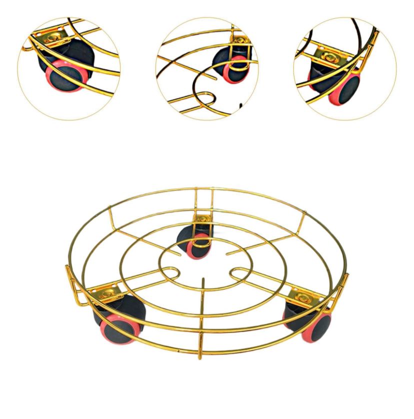 Un support pour gaz mobile conçu en métal doré pour déplacer facilement les gaz. Structure : Fabriqué en métal solide avec des roulettes pour une mobilité aisée.