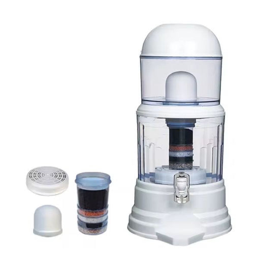 Cette fontaine purificatrice d'eau d'une capacité de 16 litres est conçue pour un usage domestique ou au bureau.