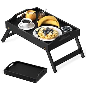 Un plateau de lit en bambou pliable, parfait pour prendre son petit déjeuner au lit ou pour travailler sur un ordinateur portable.
