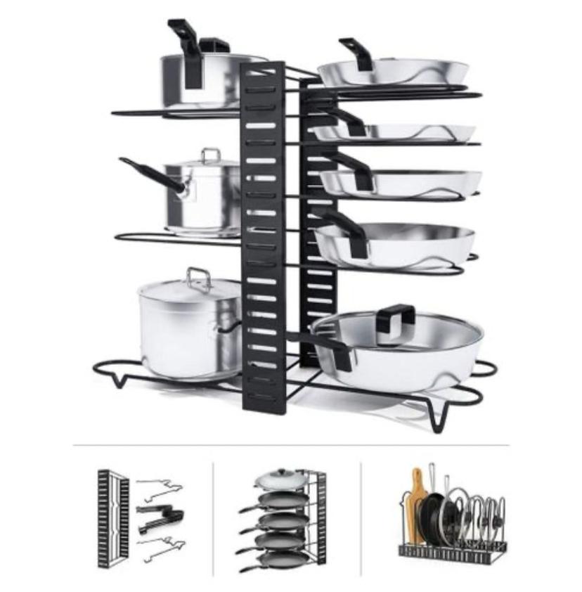 Un organisateur de casseroles et de poêles réglable idéal pour le rangement de la cuisine.