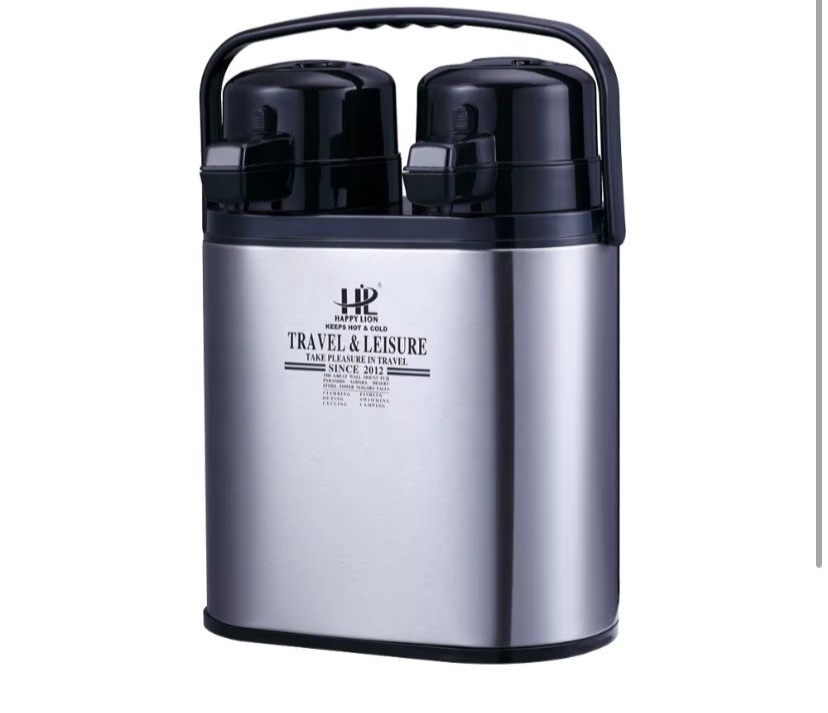 Thermos isotherme double (souvent appelé "Airpot Duo") de 2,6l, conçu avec deux compartiments séparés pour conserver simultanément deux types de boissons à leur température idéale sans mélange de saveurs.